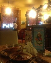 Интерьер кафе «Заравшан» на улице Баумана выдержан в универсальном, но аккуратном стиле: деревянная меблировка, небольшая летняя терраса, текстильный декор, плазменные ТВ-панели со спортивными трансляциями — словом, отличное место для сытного и недорогого обеда. Кроме того, предлагается организация торжеств и услуга доставки блюд.